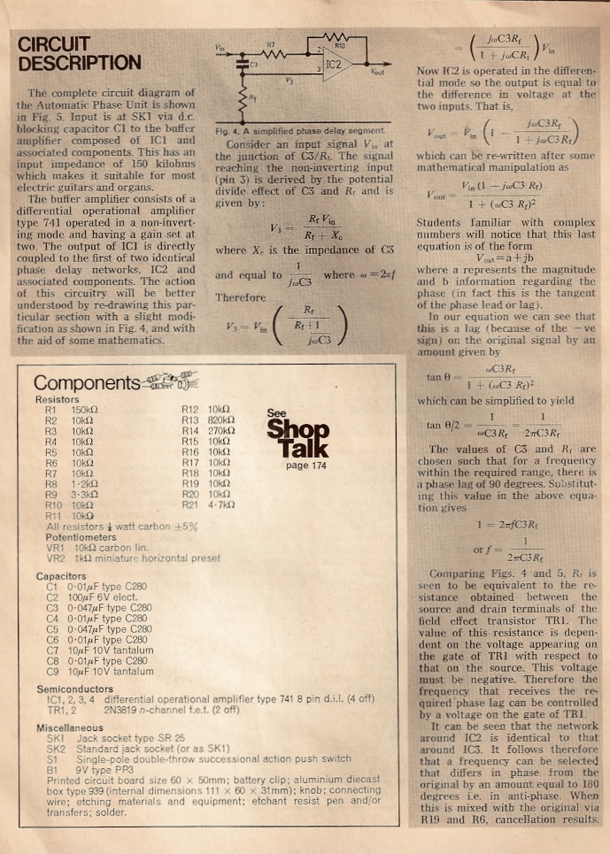 Ou encore, cette analyse tirée du site www.electrosmash.com : There are also several enhancements on the design in order to make the circuit stable and reliable: All components are based in silicon, all transistor stages include an emitter resistance, which makes the gain independent from temperature or transistor intrinsic characteristics. Three out of four stages include feedback resistors and Miller capacitors, which stabilize the behavior and frequency response […].
